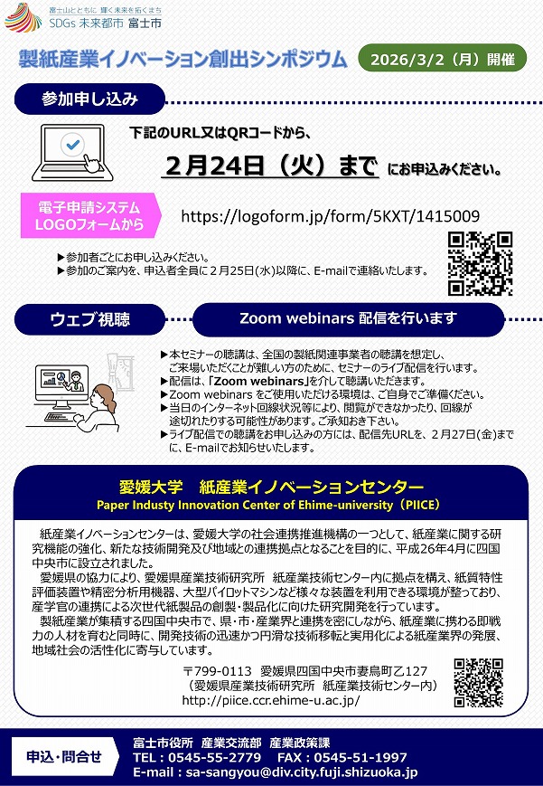 「製紙産業イノベーション創出シンポジウム」開催のお知らせ