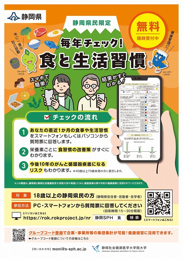 2025.11.25 「食と生活習慣のチェック」のご案内 「食と生活習慣のチェック」のご案内です。 詳しくはチラシをご覧ください。 グループコード登録で事業所の状況把握も可能ですので、健康経営にご活用ください。 Tweet